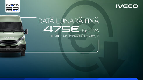 Alegeți IVECO DAILY FURGON cu 3 luni GRAȚIE la plata ratelor și o rată fixă de 475 EUR/lună fără TVA!